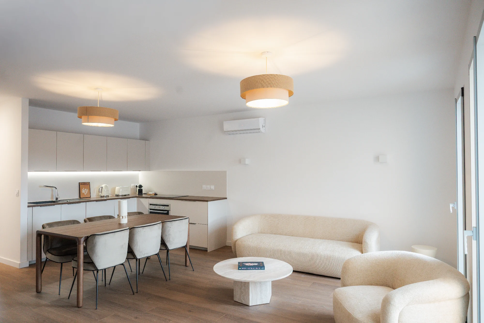 Un grand salon cuisine salle a manger